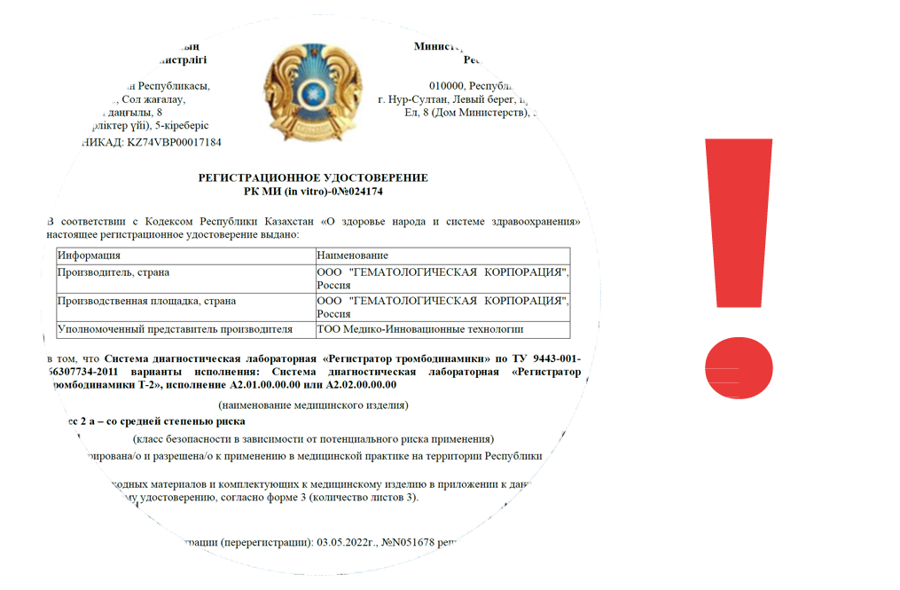 Оборудование и расходные материалы для Тромбодинамики зарегистрированы в Республике Казахстан